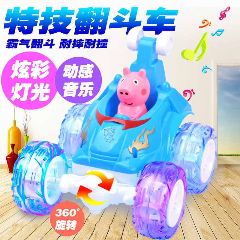 Children's remote-controlled tipping bucket cart Toys small pig stunts tumble caravan automatic roll over electric charging car resistant to fall boy