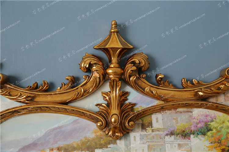 128x99 European And European Style Extravagant MEDITERRANEAN WIND LANDSCAPE PAINTING HAND-PAINTED HORIZONTAL VERSION FIREPLACE OIL PAINTING GOLDEN LIVING ROOM SOFA