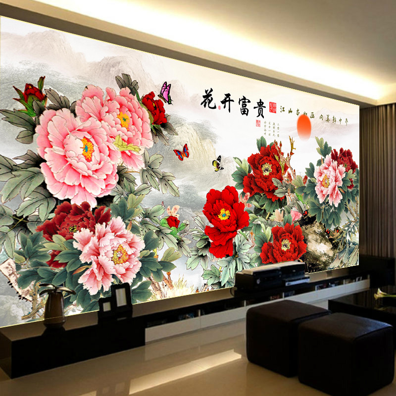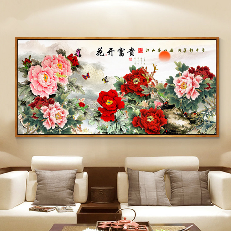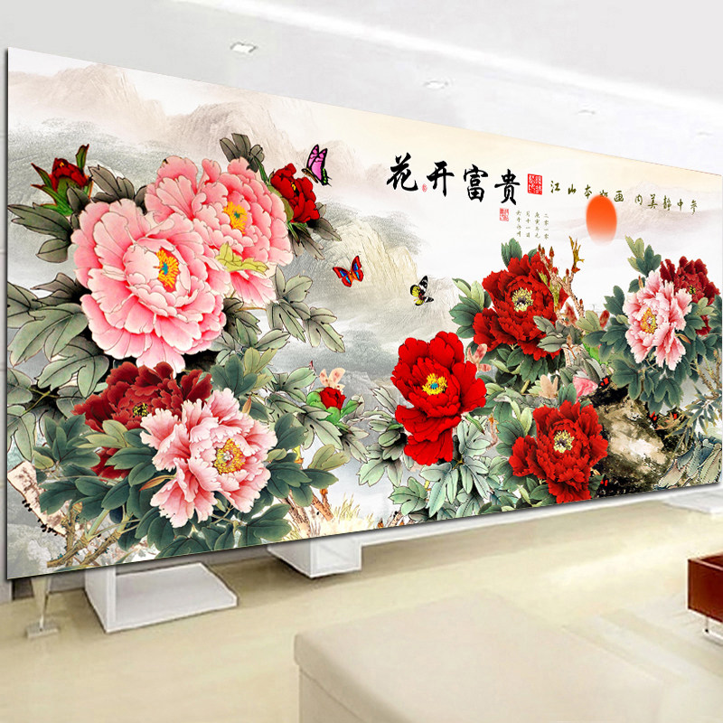 Mona Lisa cross stitch thread embroidery peony flowers blooming rich living room new landscape painting large 2 meters 5 full embroidery