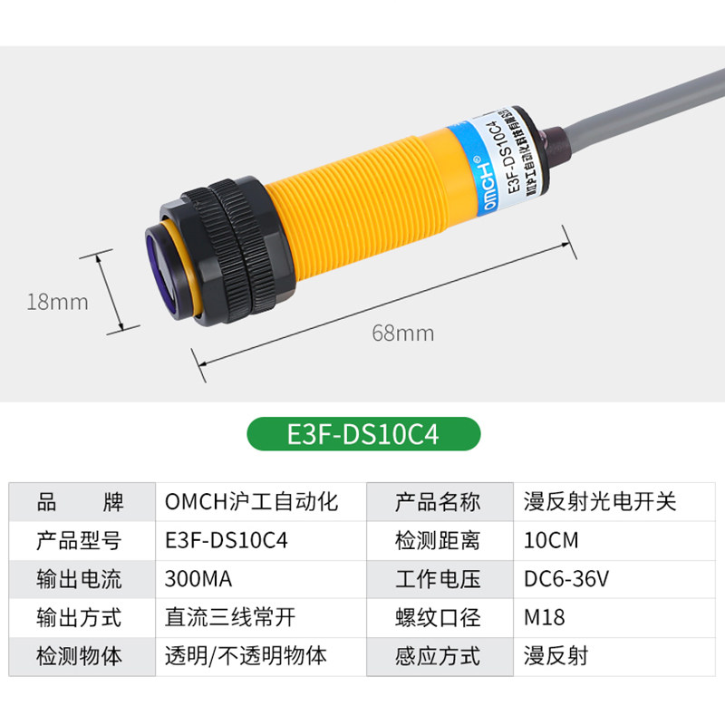 E3F-DS10C4 E3F-DS10C4 C1 photoelectric switch sensor diffuse reflection direct current third-line NPN often open infrared sensing