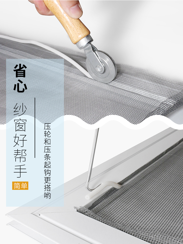 Plastic-steel aluminium alloy window screen Gauze Strip Press wheel Wood handle Double head Size press wheel yarn door mounting tool hook-Taobao