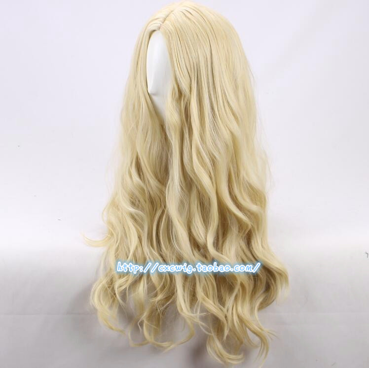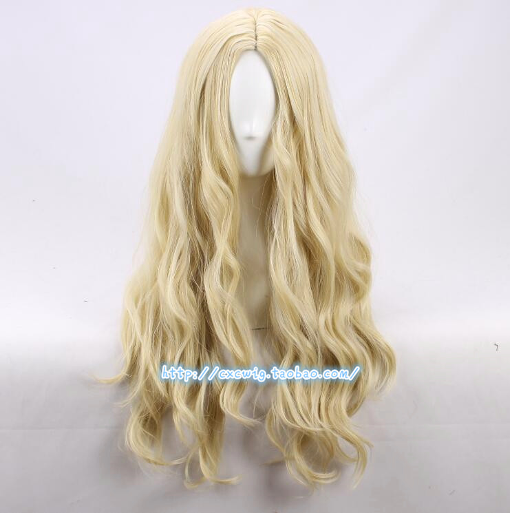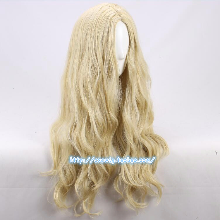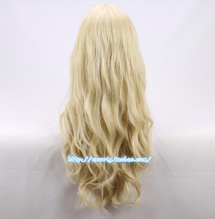 Upper ancient scroll 5 days International Agasha light golden long curly hair large scalp and split cosplay wig fashion