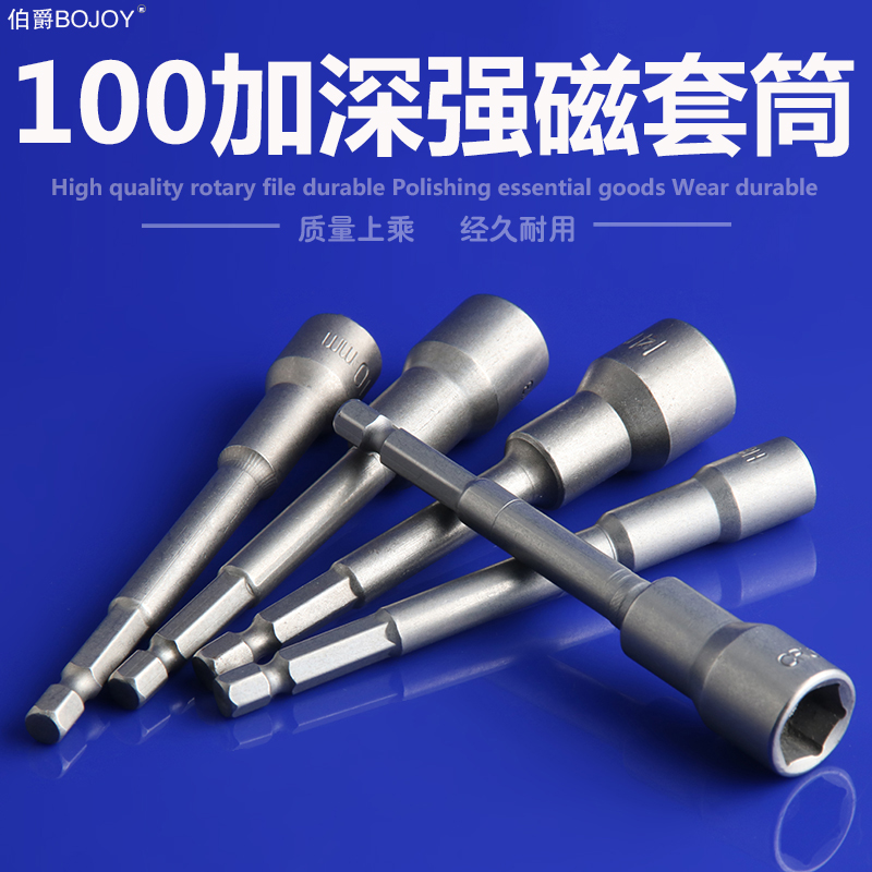 Count 100mm lengthened strong magnetic pneumatic screwdriver sleeve Pneumatic sleeve hexagonal shank Outer hexagonal batch head electric sleeve head