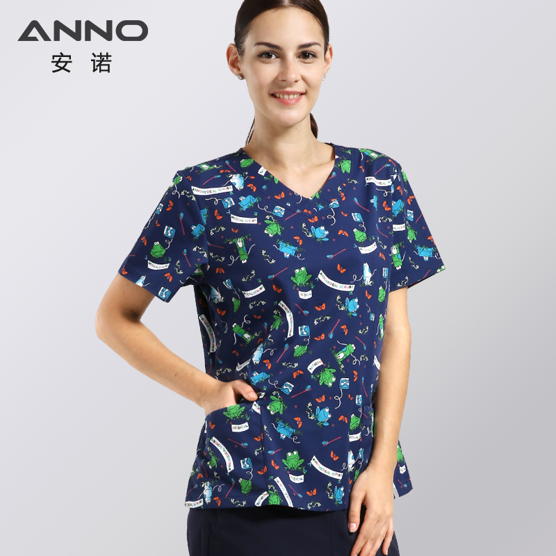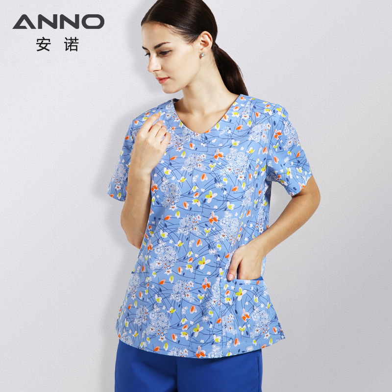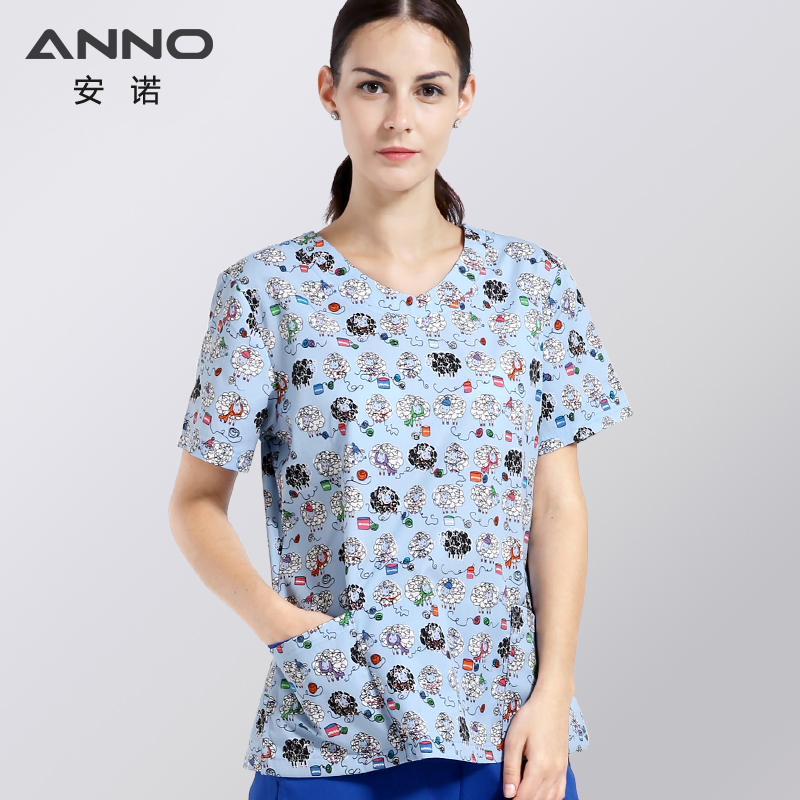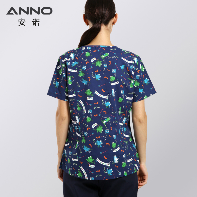 ANNO ANNO Scallop Printed Short Sleeve Doctor Nurse Overalls Beauty Salon Pet Hospital 16SS052