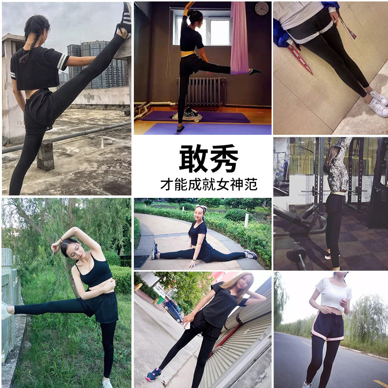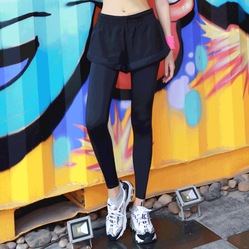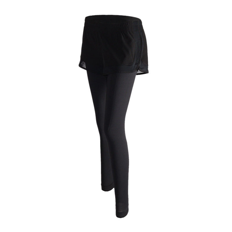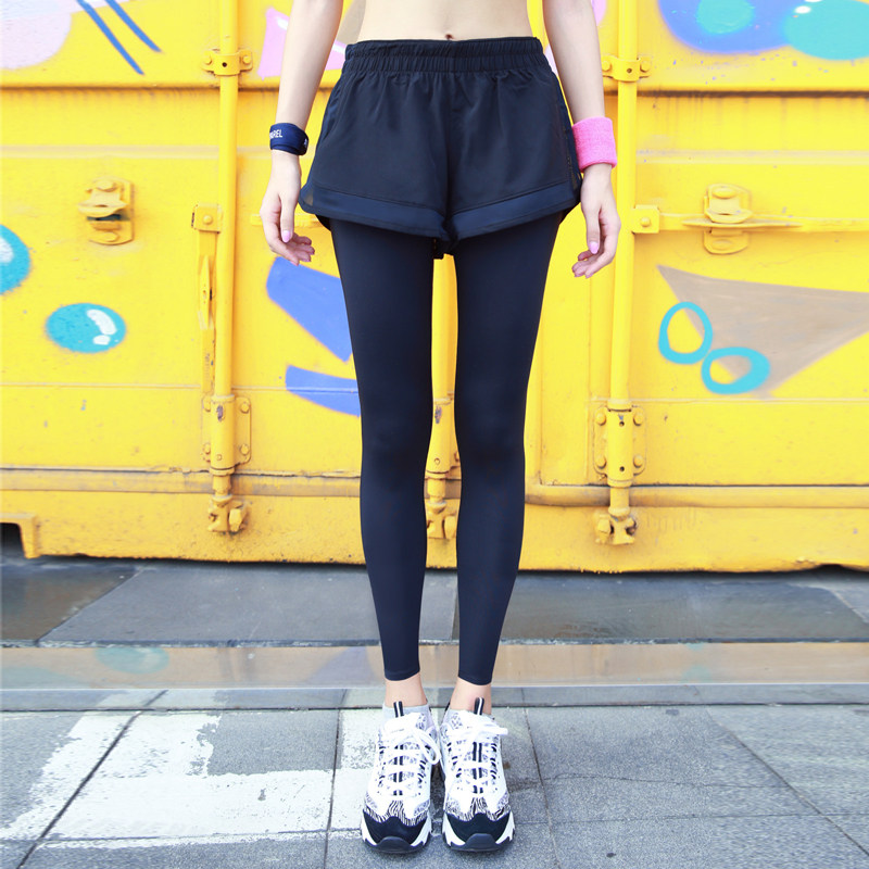 Fake two running speed dry fitness pants with bottom yoga sports pants elastic training tight fit pants female display slim fit