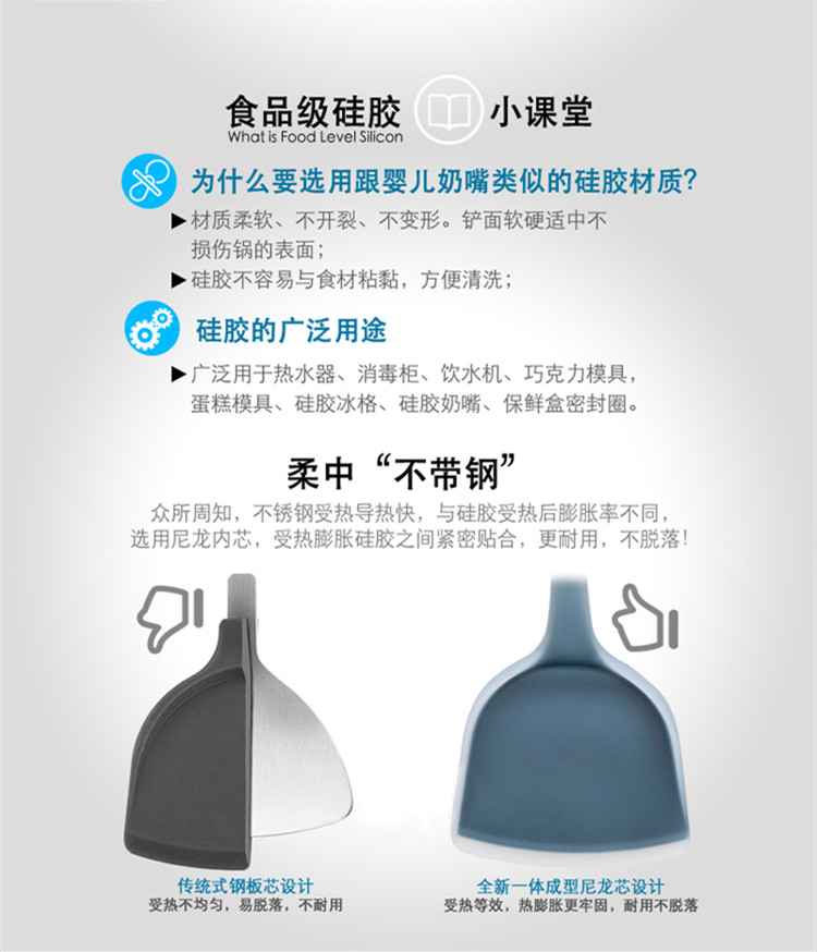 Food silicone gel pan shovel not covered with pan protective pan special shovel high temperature resistant kitchenware without injury pan fried vegetable shovel lengthened suit