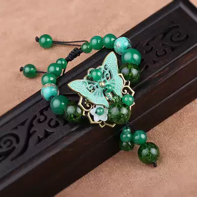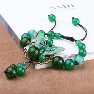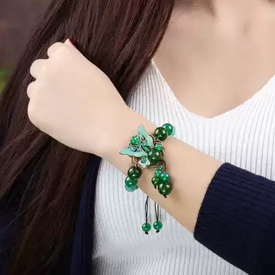 National wind hand chain Forest butterfly green agate bead hand string fresh hundred with retro style hand ornaments women's jewelry