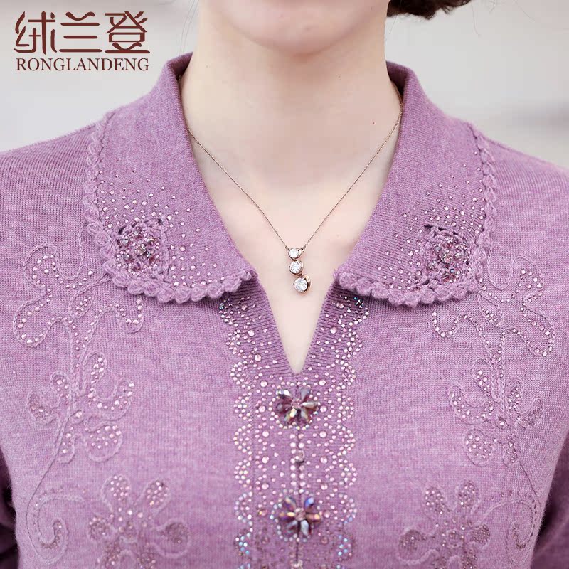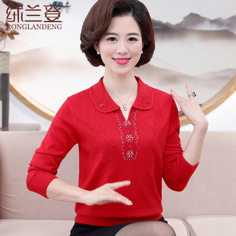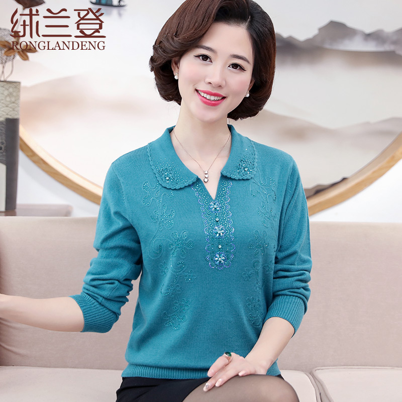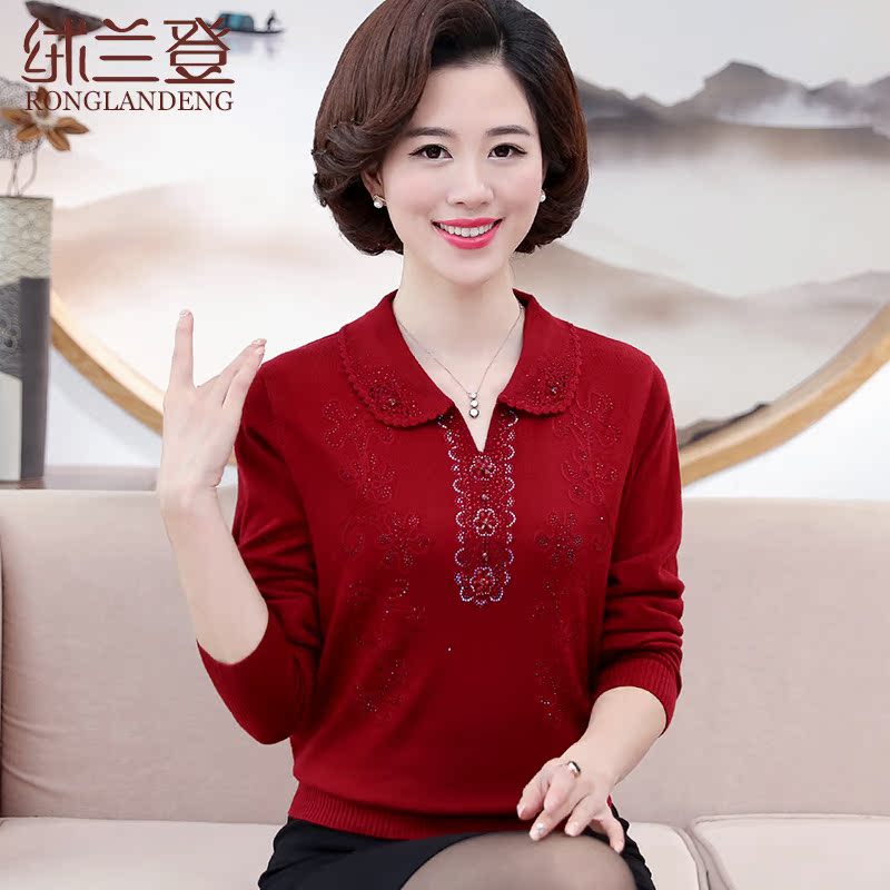 2018 autumn new middle-aged women's knitwear top large size mom sweater solid color long sleeve T-shirt clothes