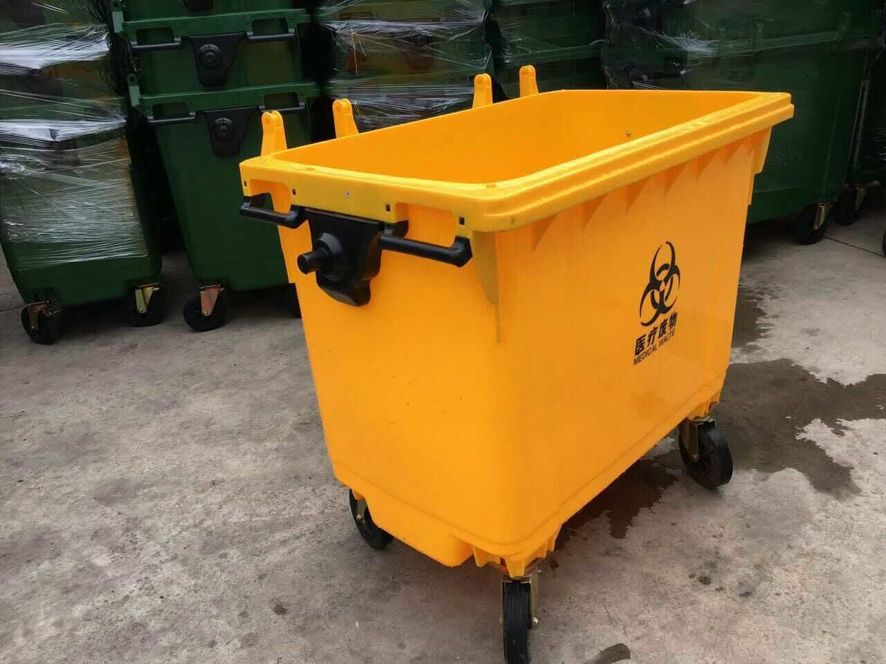 660L Medical Waste Truck Yellow Thickening Waste Cabin Hospital with a garbage truck large garbage cans green