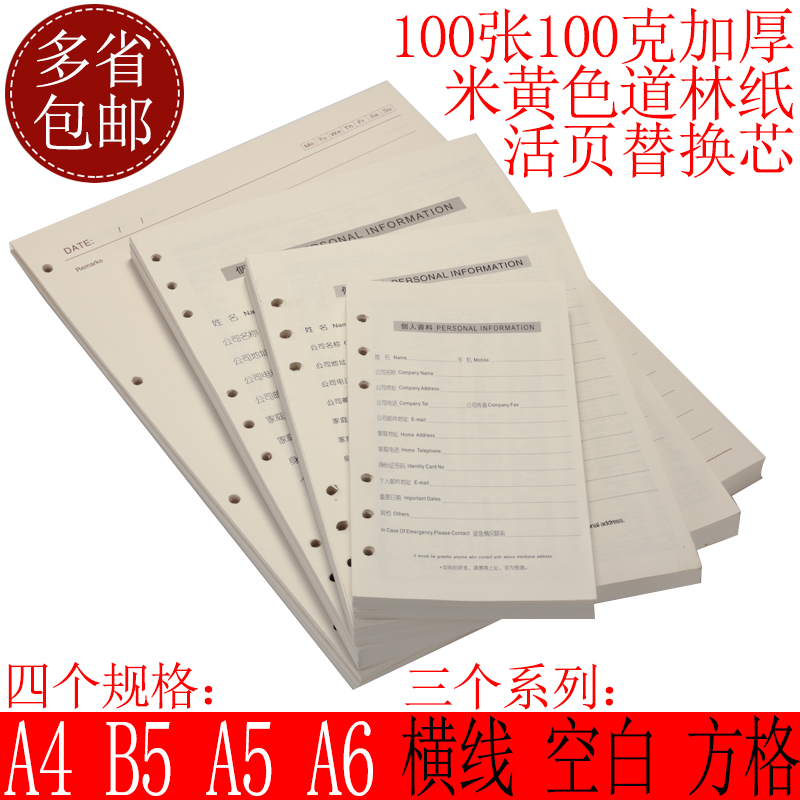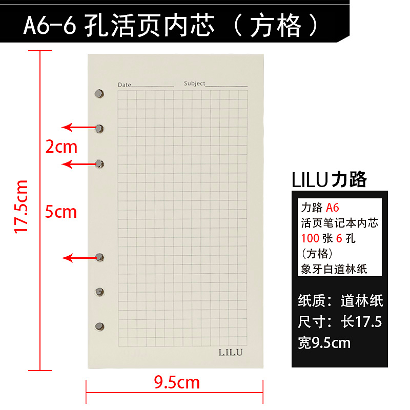 Liyroad six holes live paper thick notebook replace paper core 4 holes 6 holes 9 holes for core a6a5b5a4 mesh square living page inner core blank white rice zodiac forestry paper kraft paper cage