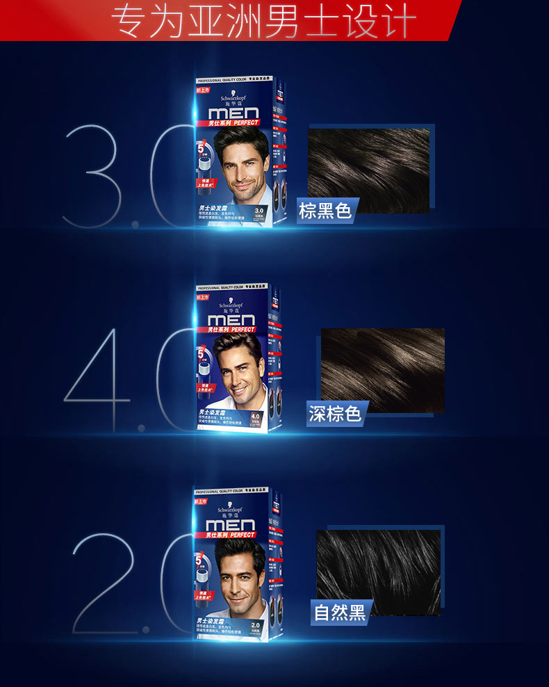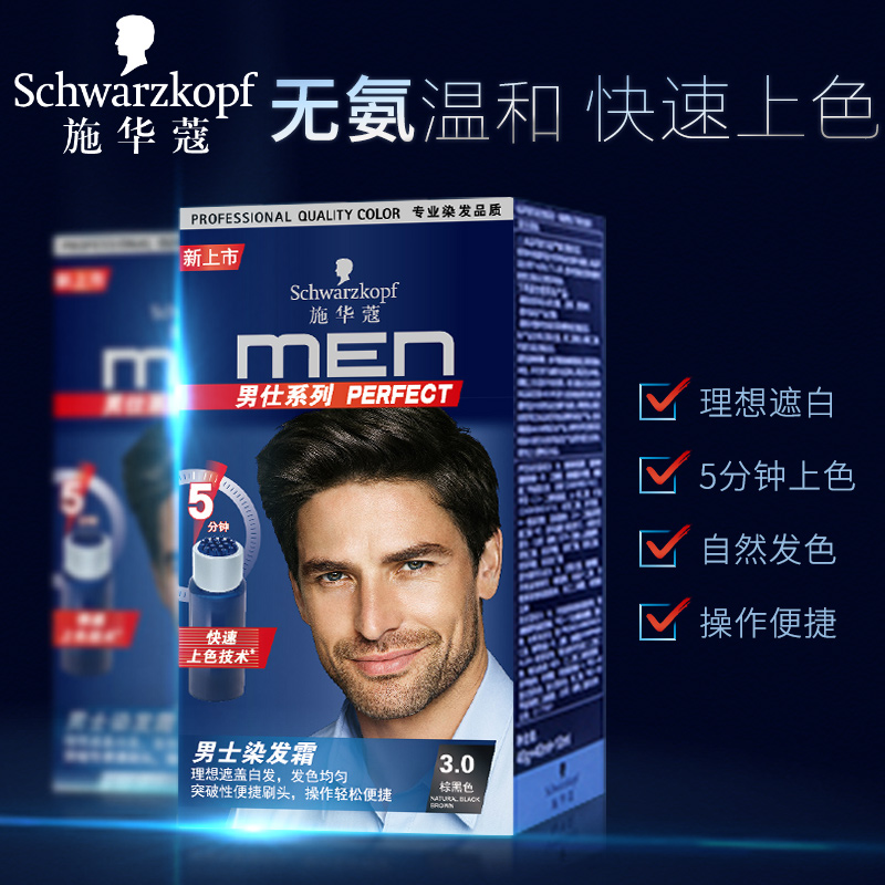 Schwarzkopf hair dye Men's special color plant pure own at home hair dye cream Natural black cover white hair