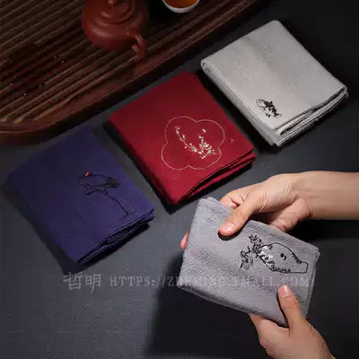 Zheming embroidered cotton linen Jiefang tea ceremony tea towel raising pot tea cloth Kung Fu tea mat square double large absorbent towel