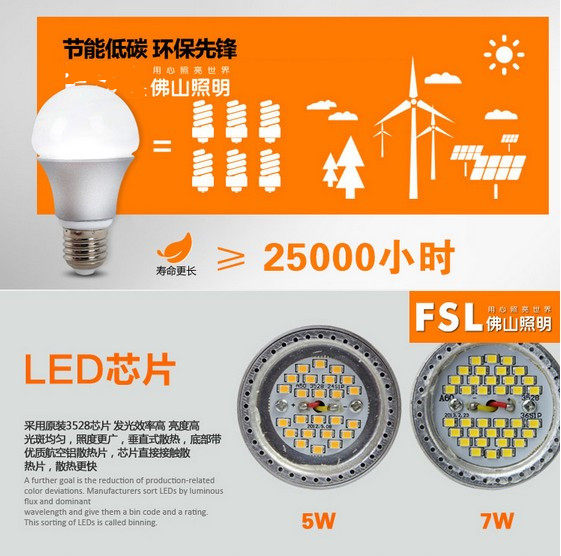 FSL Foshan led ball bubble LEDe27 screw mouth bulb LED energy saving bulb E14 sharp bubble 3W5W bulb 7w light source