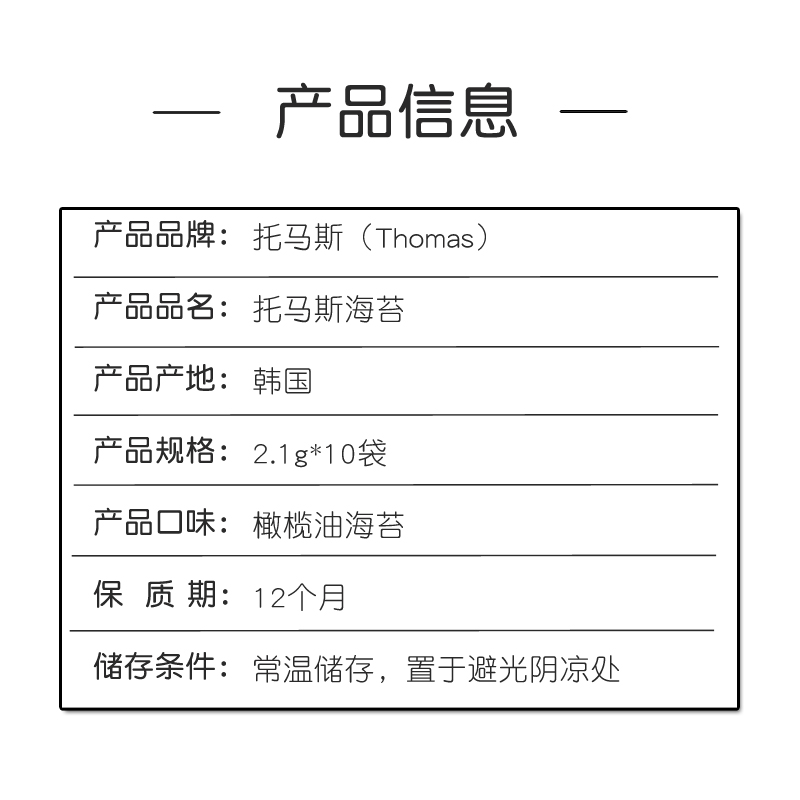 South Korea Thomas train seaweed children instant snacks baby olive oil laver non-staple food 2 1g * 10 packs