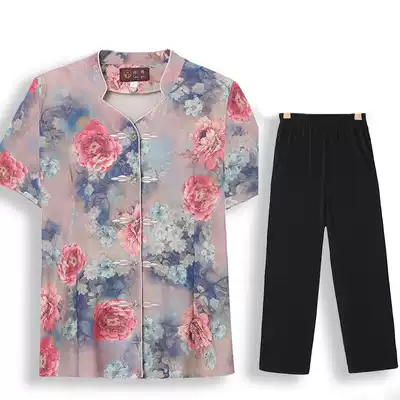 Pink short-sleeved one-piece top Blue short-sleeved one-piece top Pink top Cropped pants Blue top Cropped pants