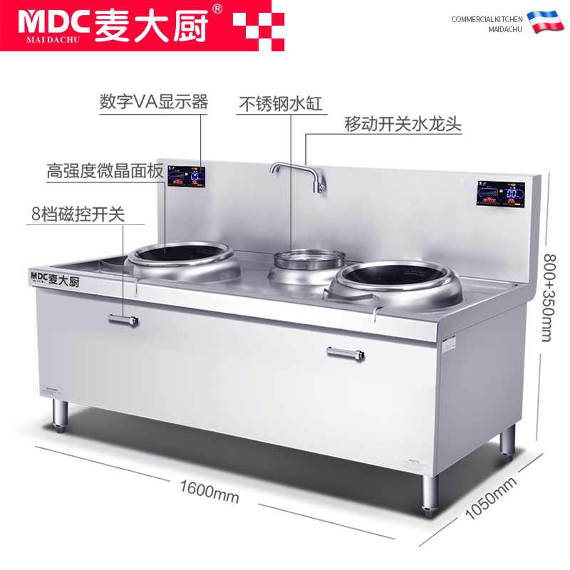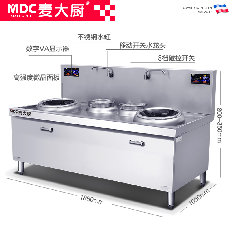 Mcdae High Power Commercial Electromagnetic Oven 15kw Double Head Hotel Hotel Small Fry and Fire Electromagnetic Furnace Bench Concave