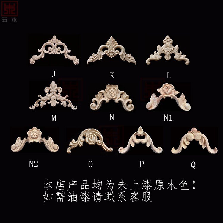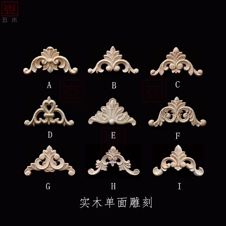 Dongyang wood carving Chinese style European-style solid wood applique with flower furniture cabinet cabinet door drawers diagonally decorated with small corner flowers