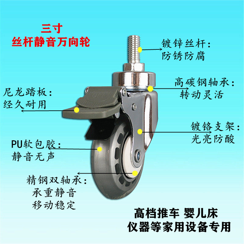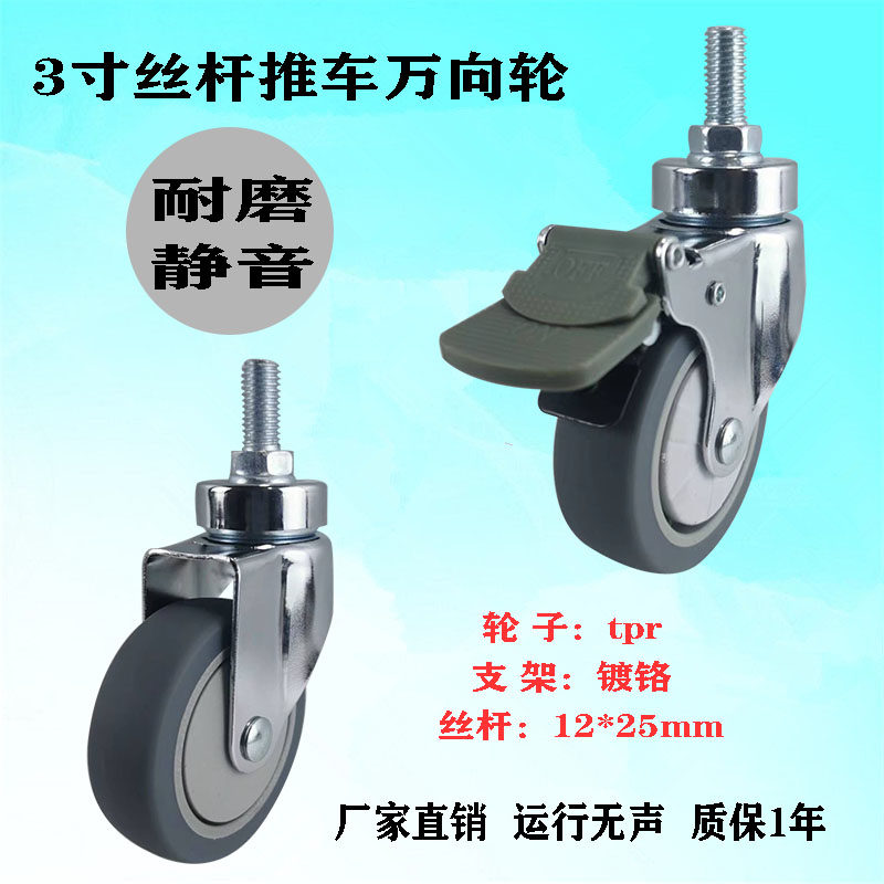 3 inch screw rod with brake medical cart universal wheel beauty salon ABS car mute wheel shopping mall hanger caster