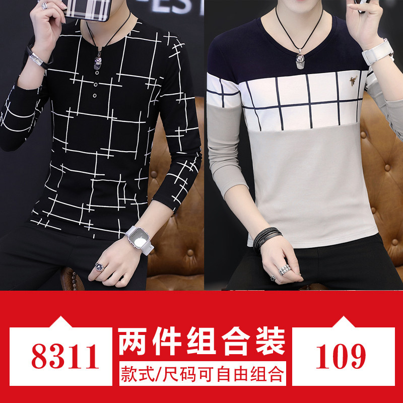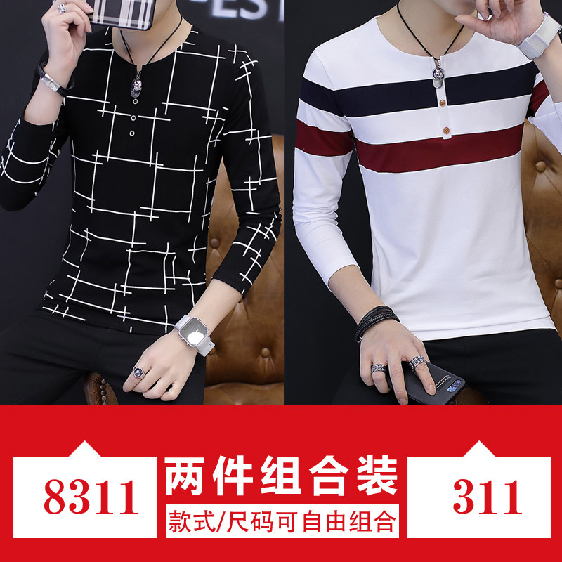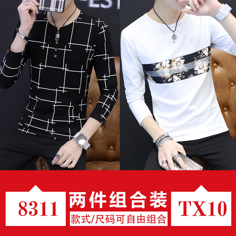 Trend men's long-sleeved t-shirt slim 2021 spring new men's personality pure cotton t-shirt thin autumn clothes small shirt