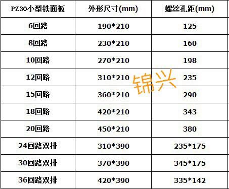 PZ30 small panel distribution box panel iron panel 360 * 210 form size PZ30-15 loop