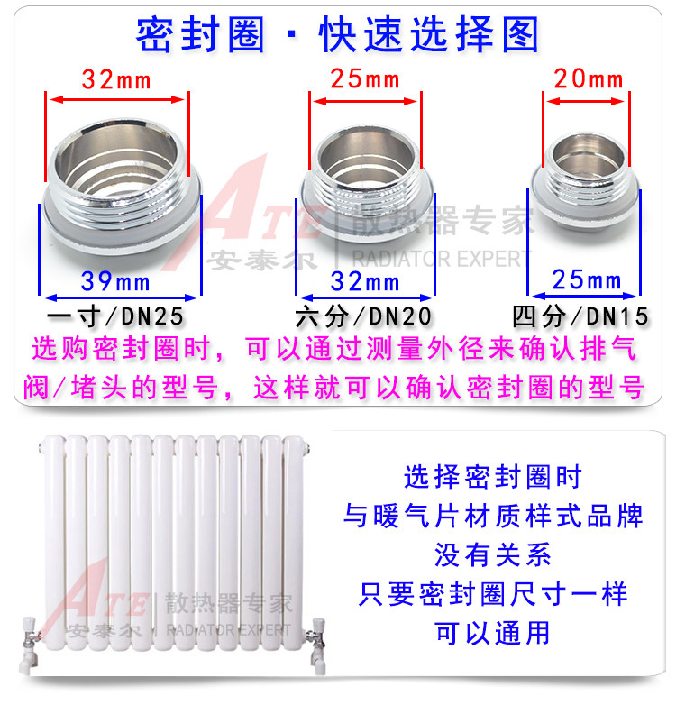Radiator exhaust valve gasket Silicone pad fastening choke plug High temperature silicone gasket gasket 4 points 6 points 1 inch