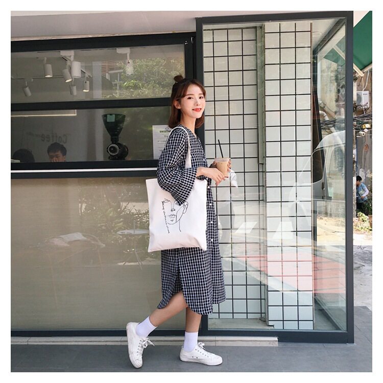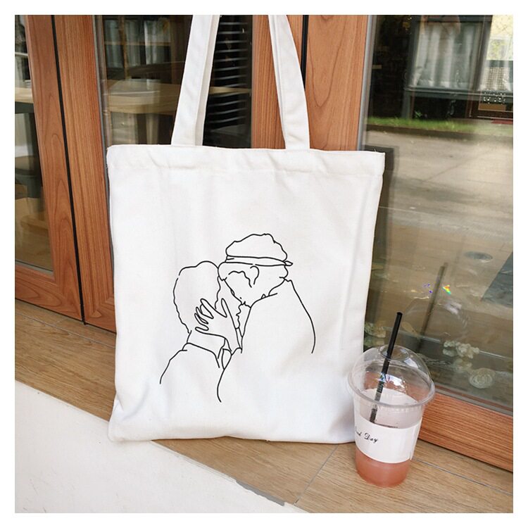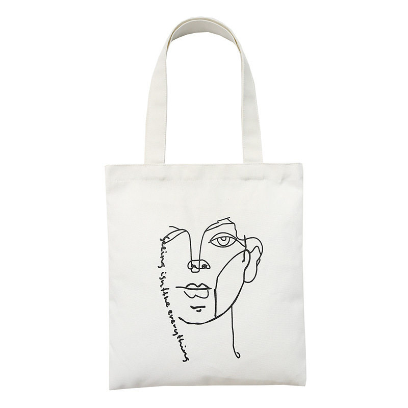 ins spring and summer new literary illustration Japanese chic joker shoulder canvas bag purchase student handbag female