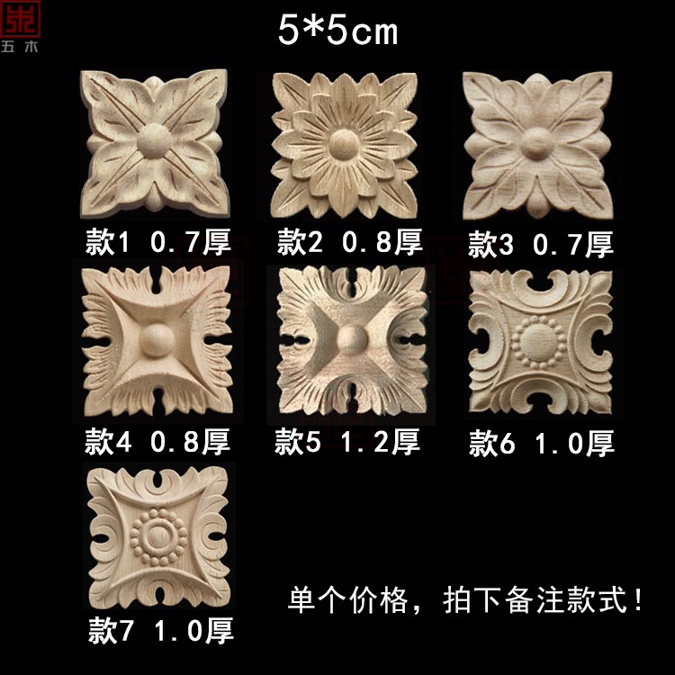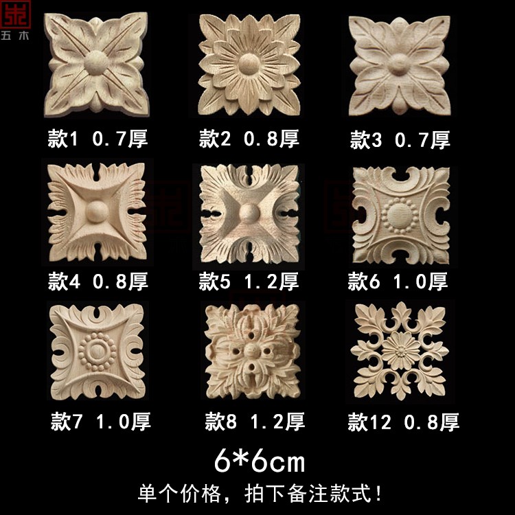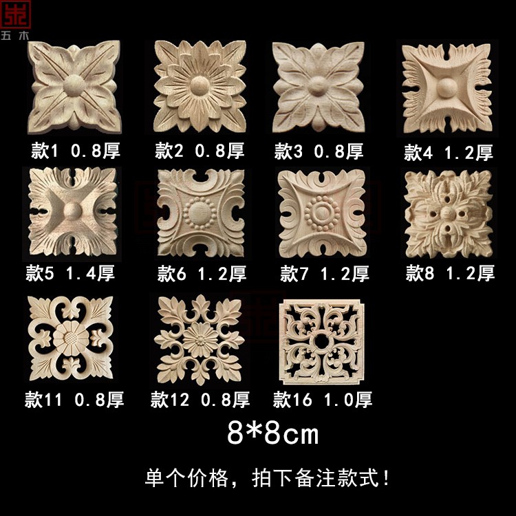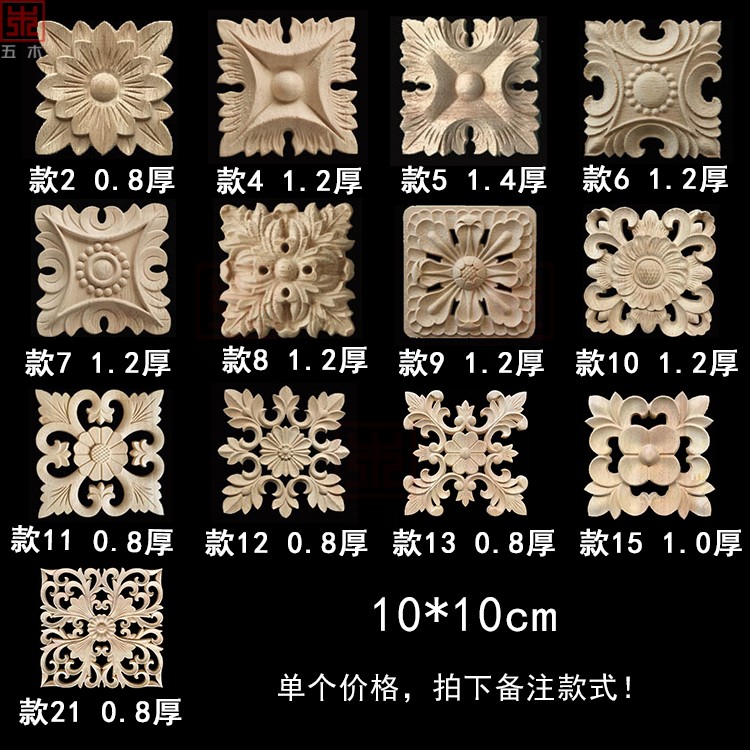 Dongyang wood carving Central European solid wood decal hollow square decal furniture cabinet door decoration wood carving flower piece
