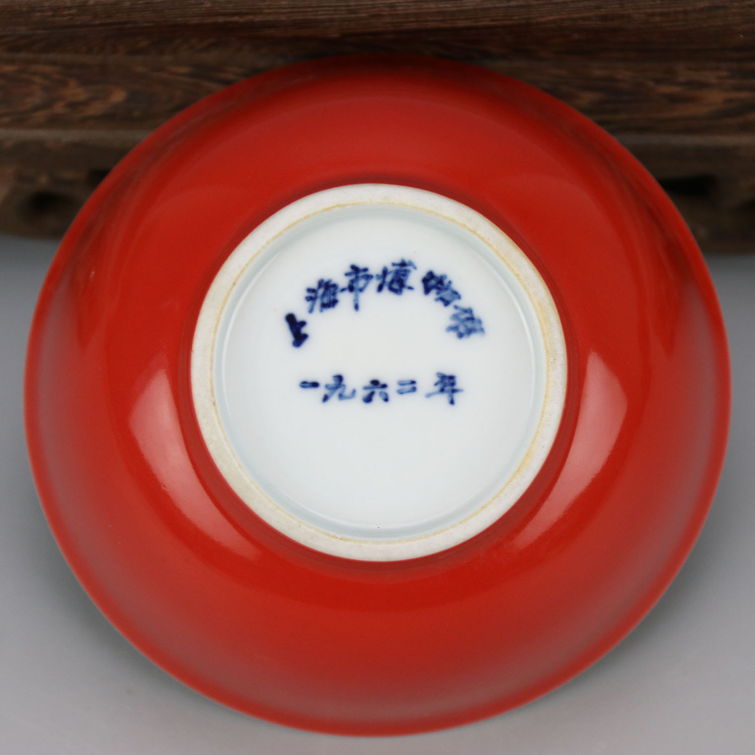 Shanghai Museum in 1962 - colored glaze red glaze 4 5 inch rice bowl of antique porcelain