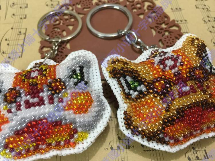 A miga cross embroidered bead embroidered key ring double-sided embroidered gold and silver dancing lion 2 optional
