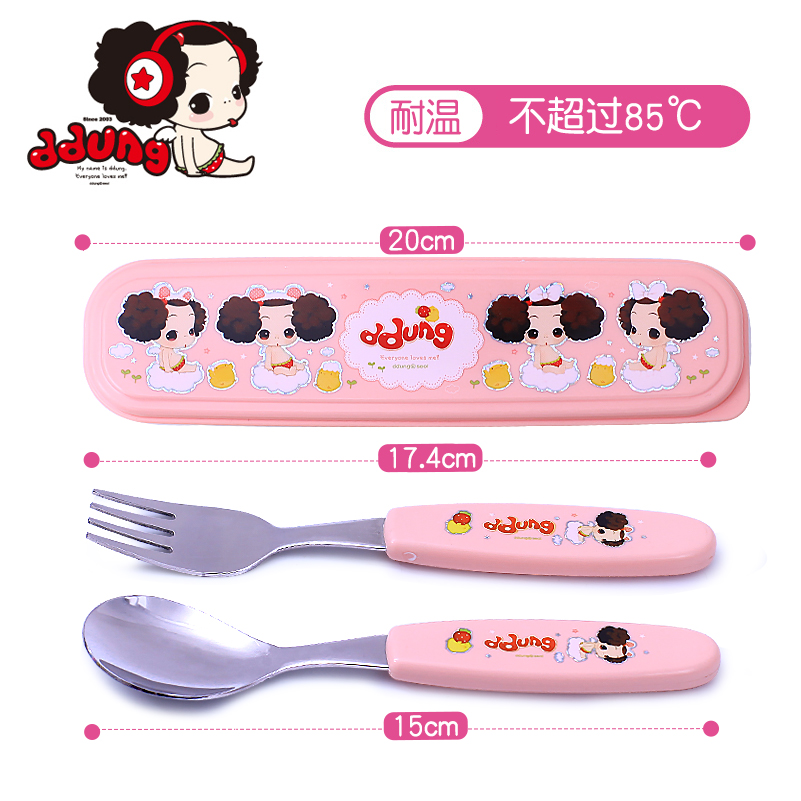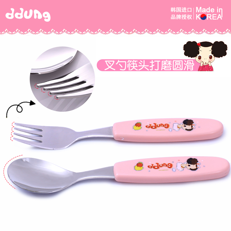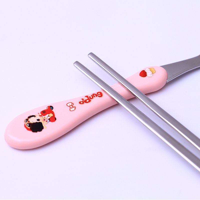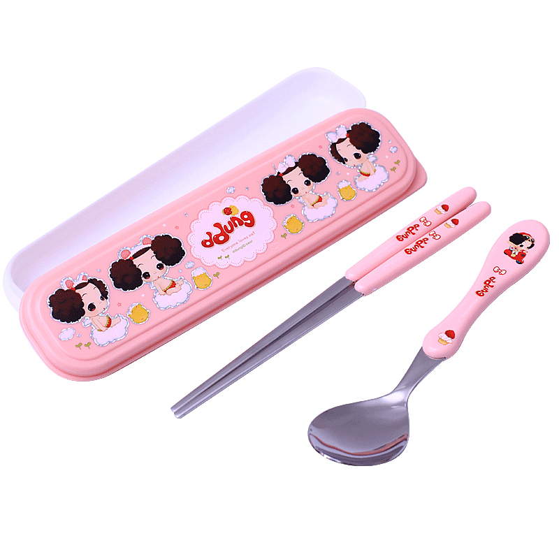 Korean imported children's tableware set for primary school students 304 stainless steel cartoon portable fork spoon chopsticks three-piece set