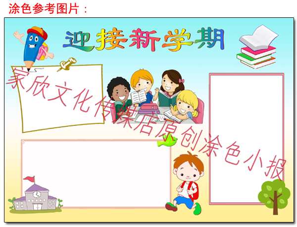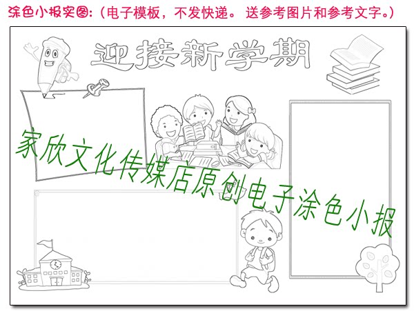 Pupils A4 A3 8K Welcome New Term Electronic tabloid word Manual Line Drawing Black and White Color Electronic Template