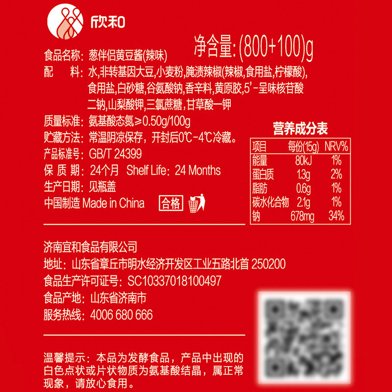 (Optional at RMB 59) Onion Companion Spicy Soybean Sauce 900g*2 Bottles Xinhe Stir-fried Vegetable Cold Dipping Sauce Brewing Sauce