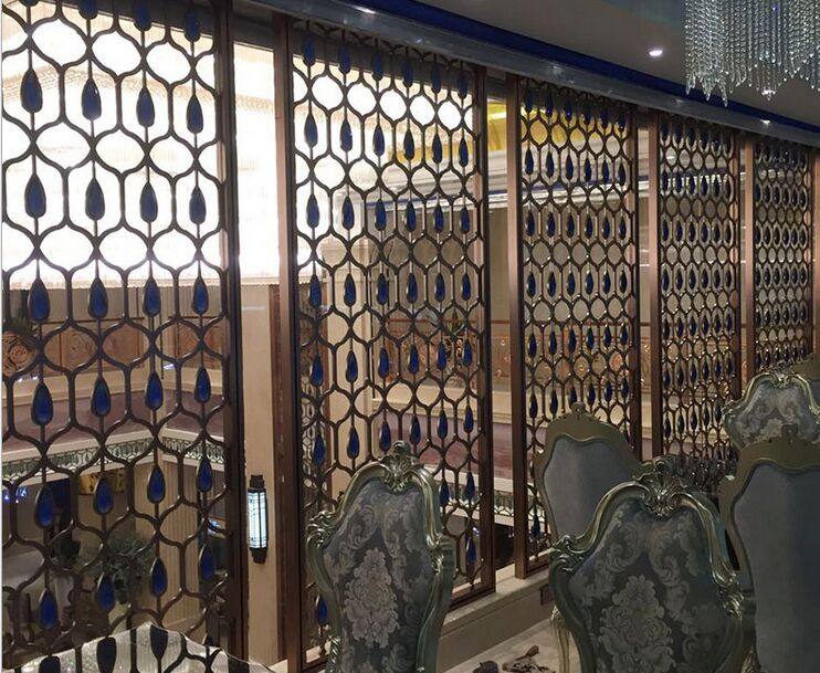 Brown hollow carved partition Chinese stainless steel screen hotel KTV porch living room decoration customization