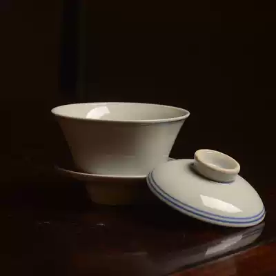 Jingdezhen antique old porcelain double line gray glaze ceramic kung fu tea set three talented Cover bowl tea bowl tea bowl