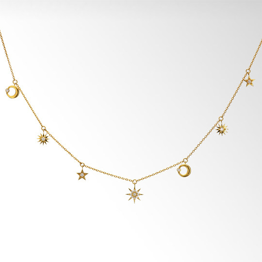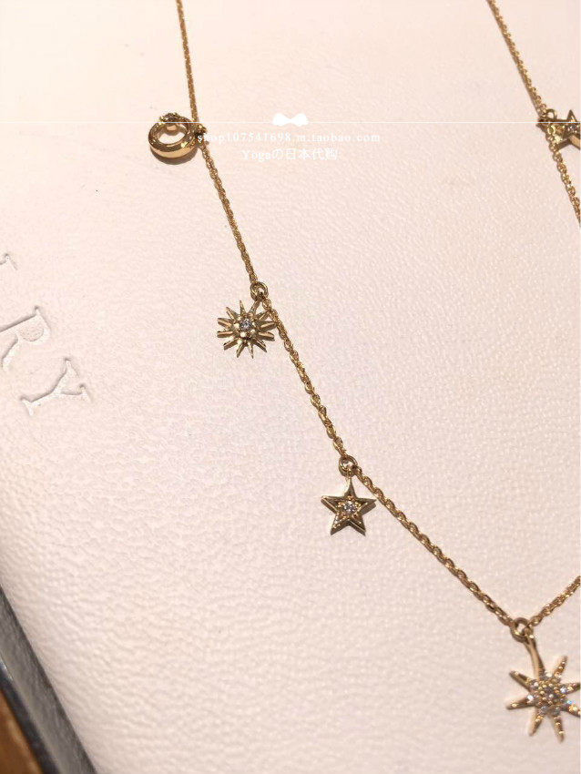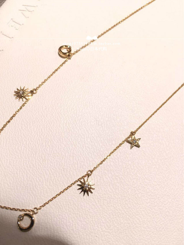 Japan Direct Mail Star Jewelry 17 Autumn 18k Gold Sun Moon Star Diamond Necklace