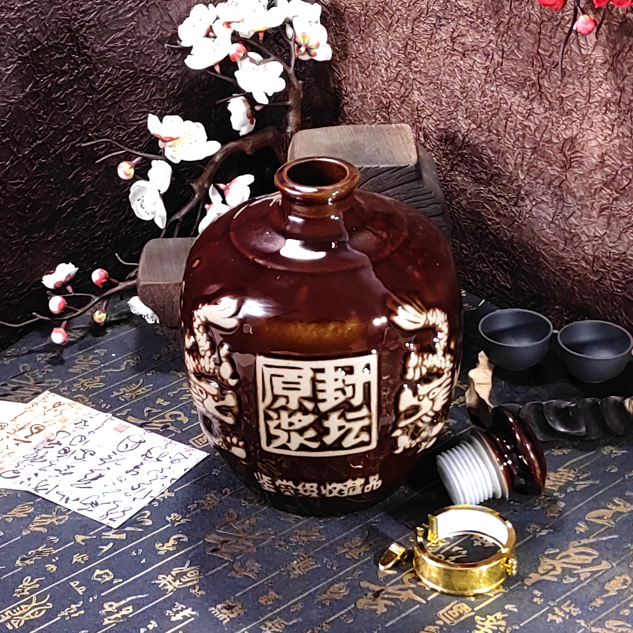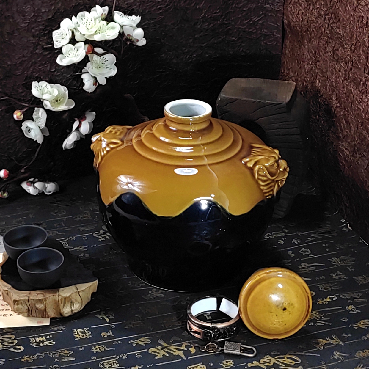 Manufacturer direct seller used wine and ceramic wine alcohol alcohol sculpted sand carved twin tiger Lion altar to customize