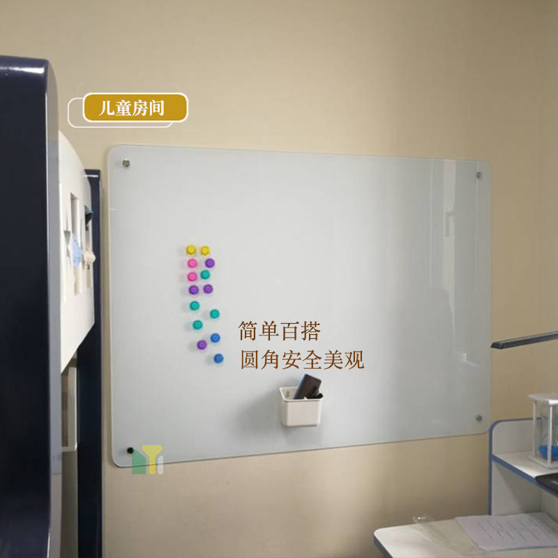 Round corner mounted tempered magnetic glass whiteboard household office meeting children's small blackboard wall mobile bracket