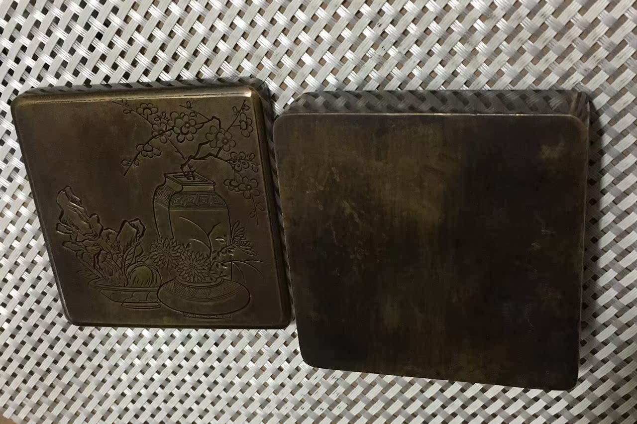 Imitation ancient Republic of China thickened old copper square ink box thickened flower and grass picture bronze ink casket pure copper Qing Dynasty Room Four Treasure