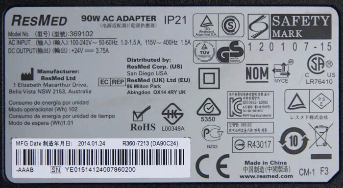Original RESMED Resmed S9 breathing machine 90W power adapter 369102 anti-snoring machine 24v