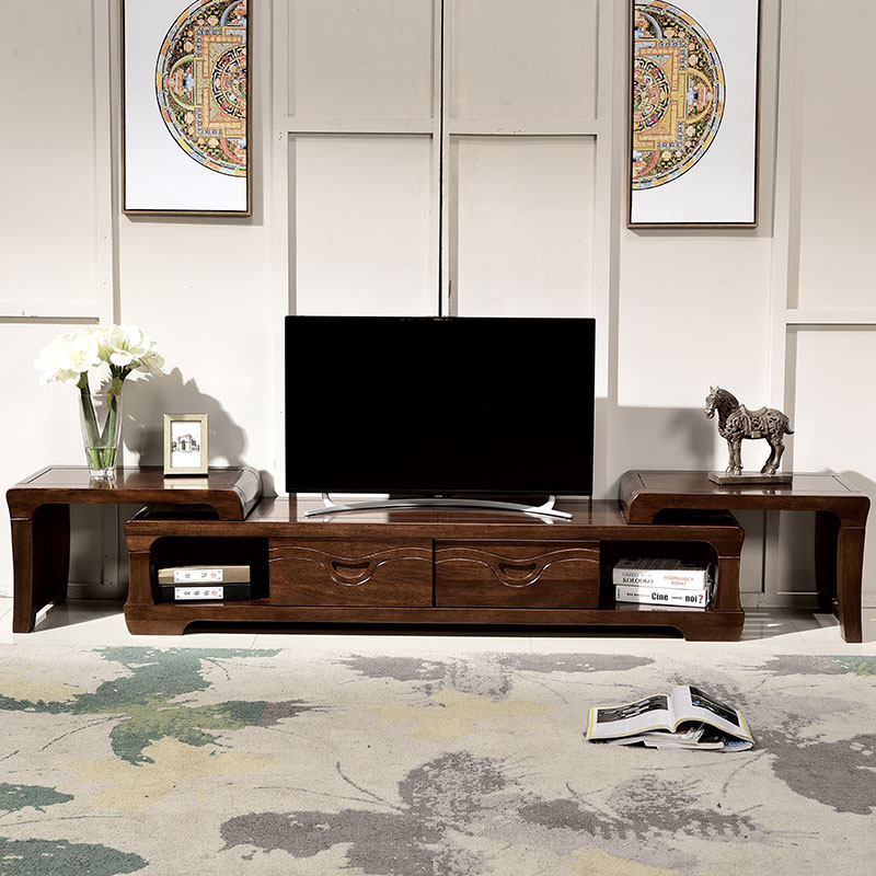 Solid wood TV cabinet combined Television cabinet Chinese cabinet black walnut living room furniture simple modern locker