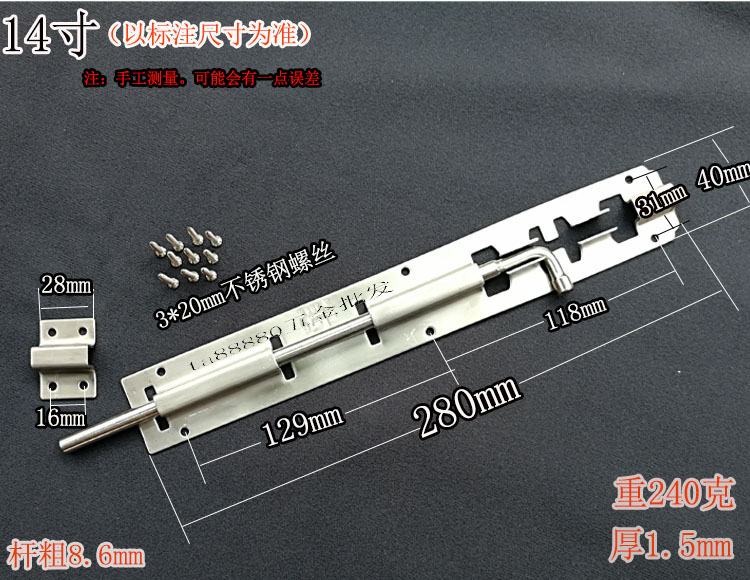 14 14 inch 304 bolt (without matching screw) 14 inch 304 bolt (with stainless steel screw)