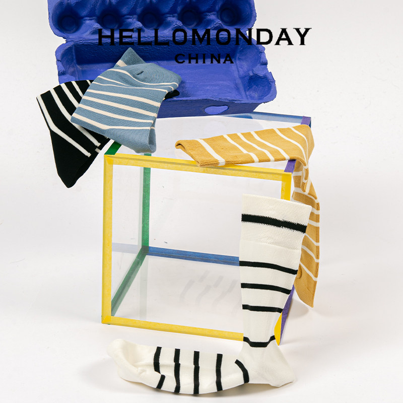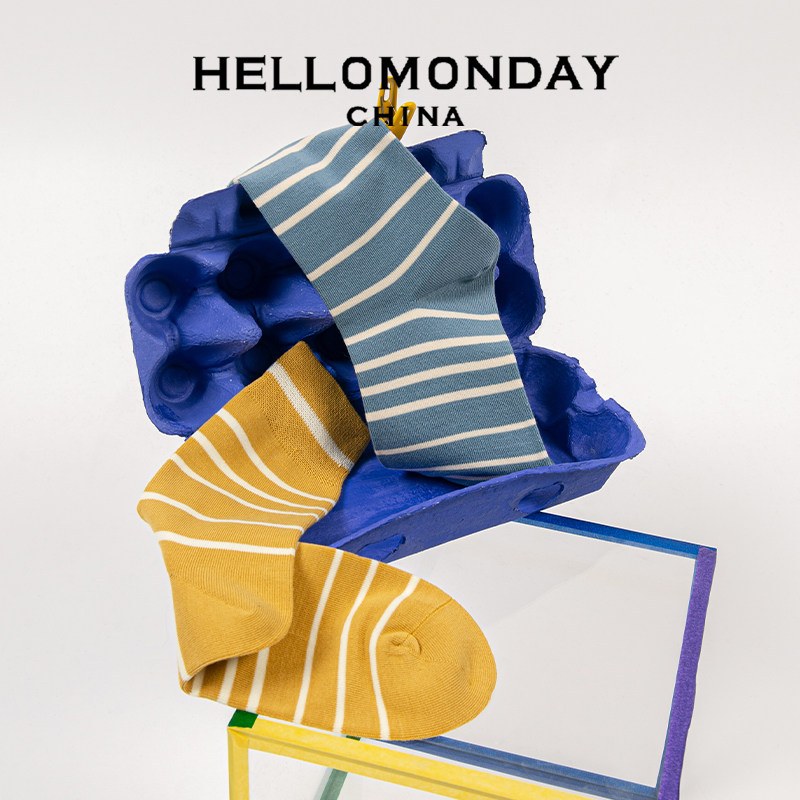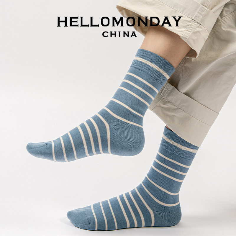 Hello Monday2020 Classic Striped Couple Socks Men and Women Designer Series Cotton Tide Socks