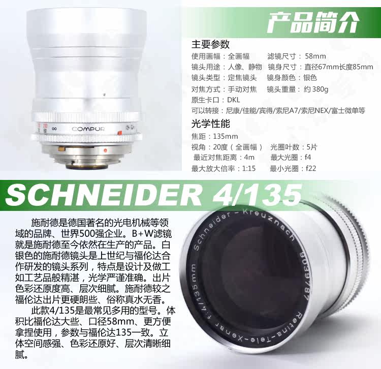 Schneider 135 4 schneider f4 135mmDKL mouth lens real water fragrance-free transfer A7LENS