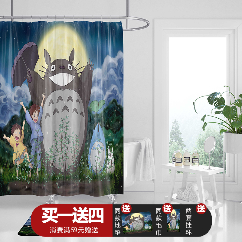 Cartoon Dragon Cat Makeup Room Polyester Fiber Bath Curtain Cloth Partition Window Thickening waterproof and mildew door curtain Curtain Delivery Ring