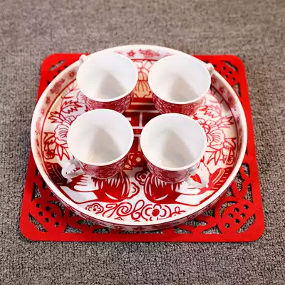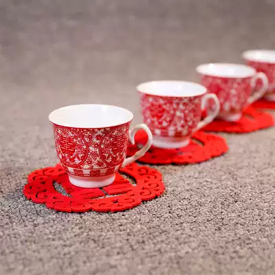 Wedding creative supplies Festive coasters and pads Newlyweds decoration products Round heart-shaped square big red happy coasters and pads