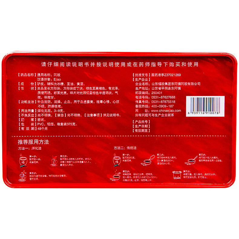 Enjoy a good gift] Fuffle Hide Gelatin 375g Shandong Donga Town Sheet Fu Glue Block Colla Colla Colla Colla Colla Colla Collard of Qi Nourishing Blood Nourishing D