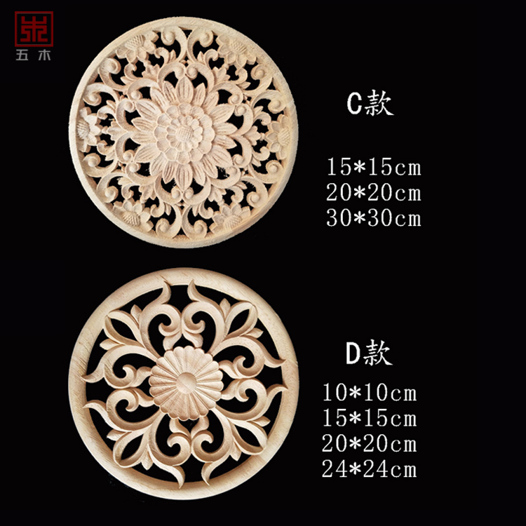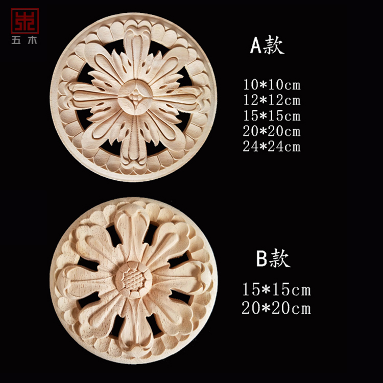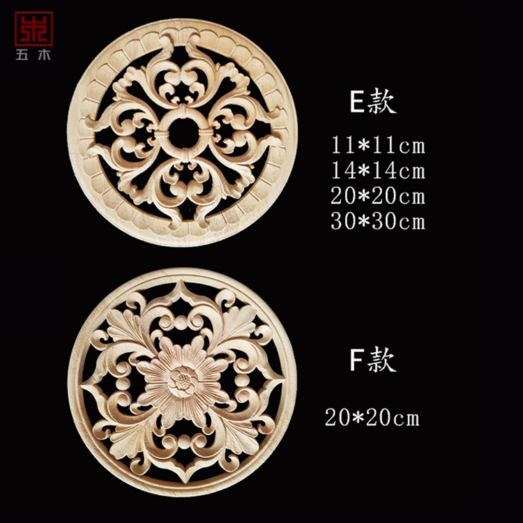 East Yangwood Carved Round Door Hearts decorative European-style solid wood applique hollowed out with side round flower integral cupboard disc patch