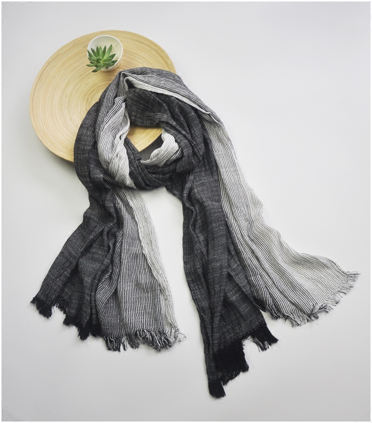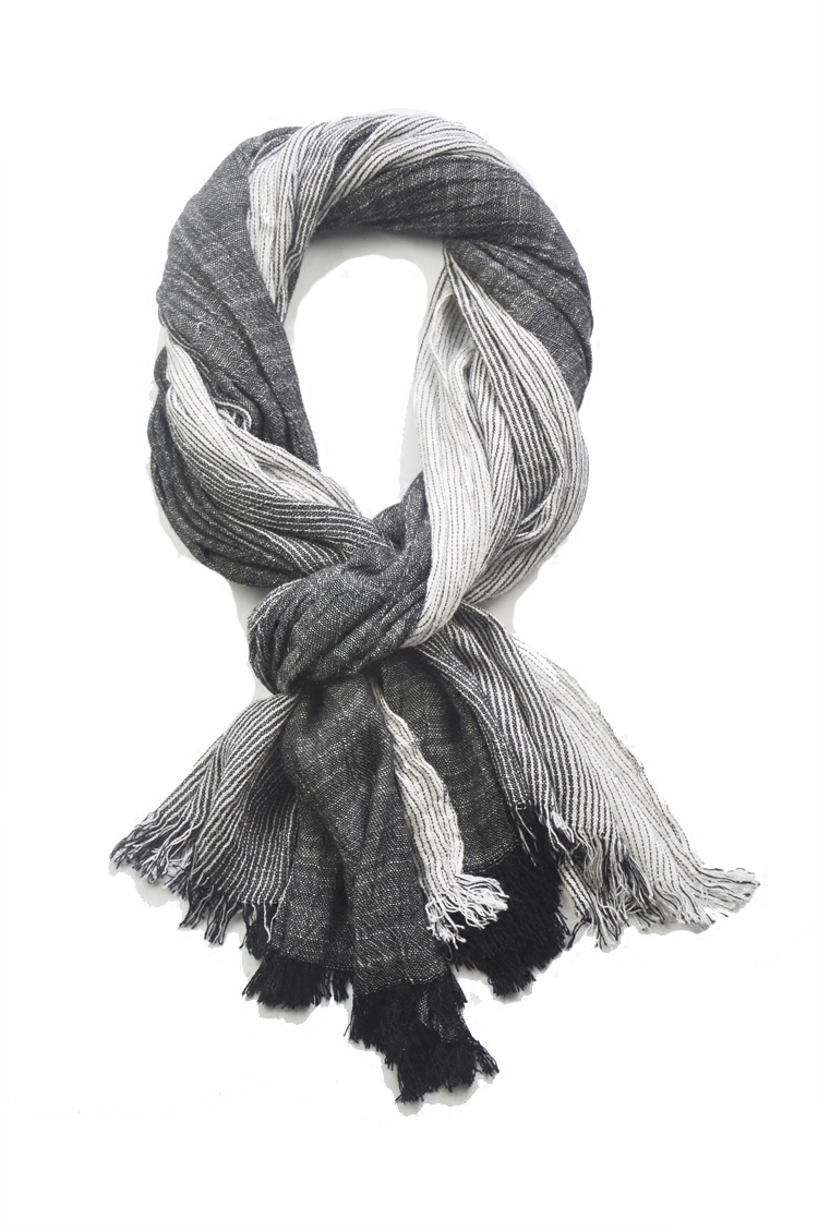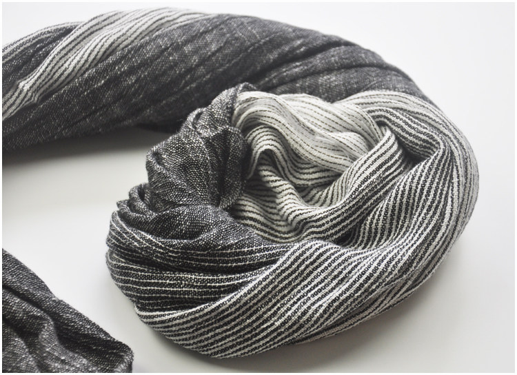 2020 autumn and winter new black and white striped gradient pure cotton scarf boys scarf couple scarf Japanese literature and art shawl