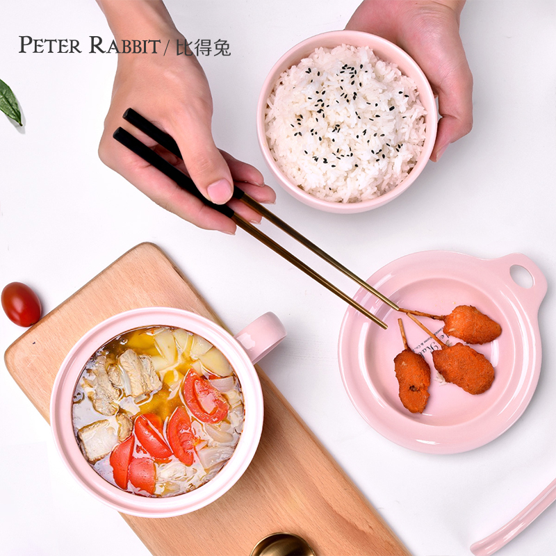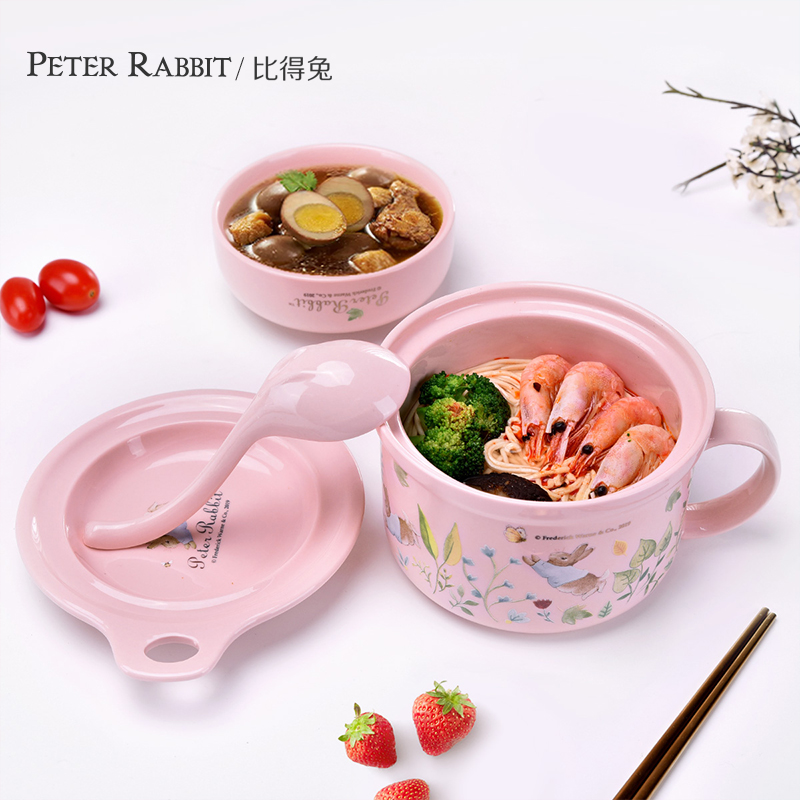 British Bigot Rabbit Dual-use Ceramic Foam Noodle Bowl lunch Box Microwave Oven Lunch Box Rice Bowl bowls Porcelain Bowl with lid Cup Tongue bowl