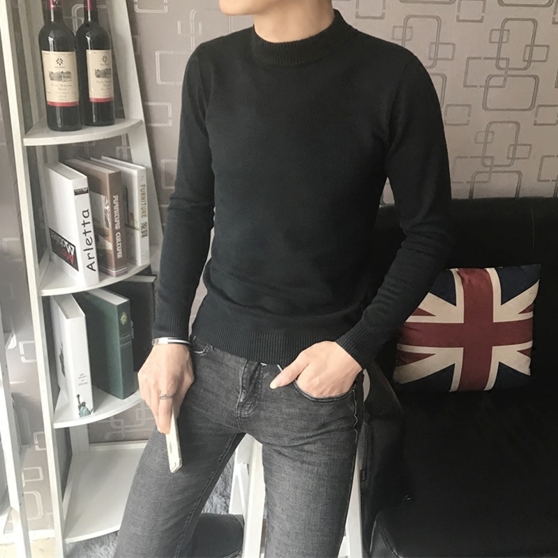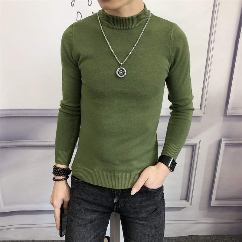 Autumn and winter Korean slim men's middle turtleneck sweater trend Hong Kong wind long sleeve sanitary clothing men's simple knitted base shirt